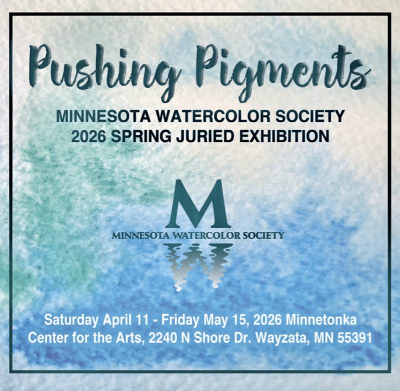 Many of Minnesota’s finest watercolorists exhibit their work in this competitive exhibition, juried by Dan Marshall. This spring’s show celebrates watercolorists’ efforts to stretch the limits of their medium: “From delicate washes that dissolve into the atmosphere to bold, saturated strokes that command the page, we want to highlight watermedia’s ability to shift effortlessly between control and spontaneity.” Exhibit opens Saturday, April 11, with a juror talk and awards presentation. Viewable through May 15.